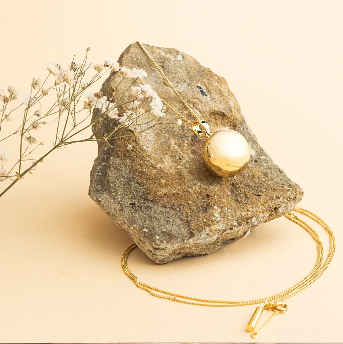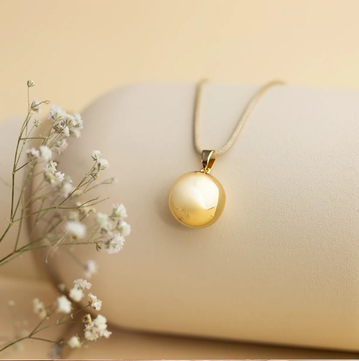 Těhotenská rolnička je tradiční šperk s historií — pochází z Latinské Ameriky, kde ji těhotné ženy nosily na dlouhé šňůrce u bříška. Při chůzi jemně cinká a vydává uklidňující tón, který miminko může vnímat už od 20. týdne těhotenství.