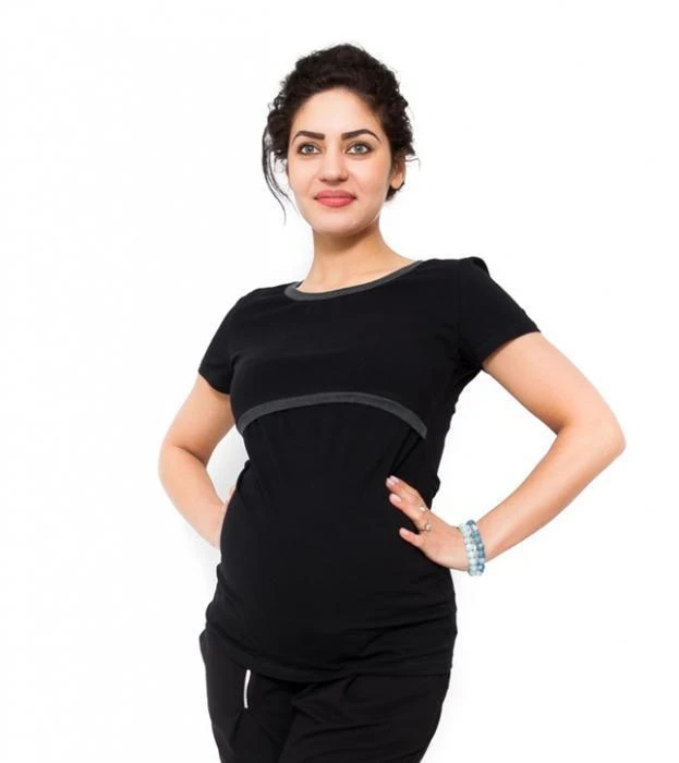 Těhotenské a kojící triko Aldona - Černá