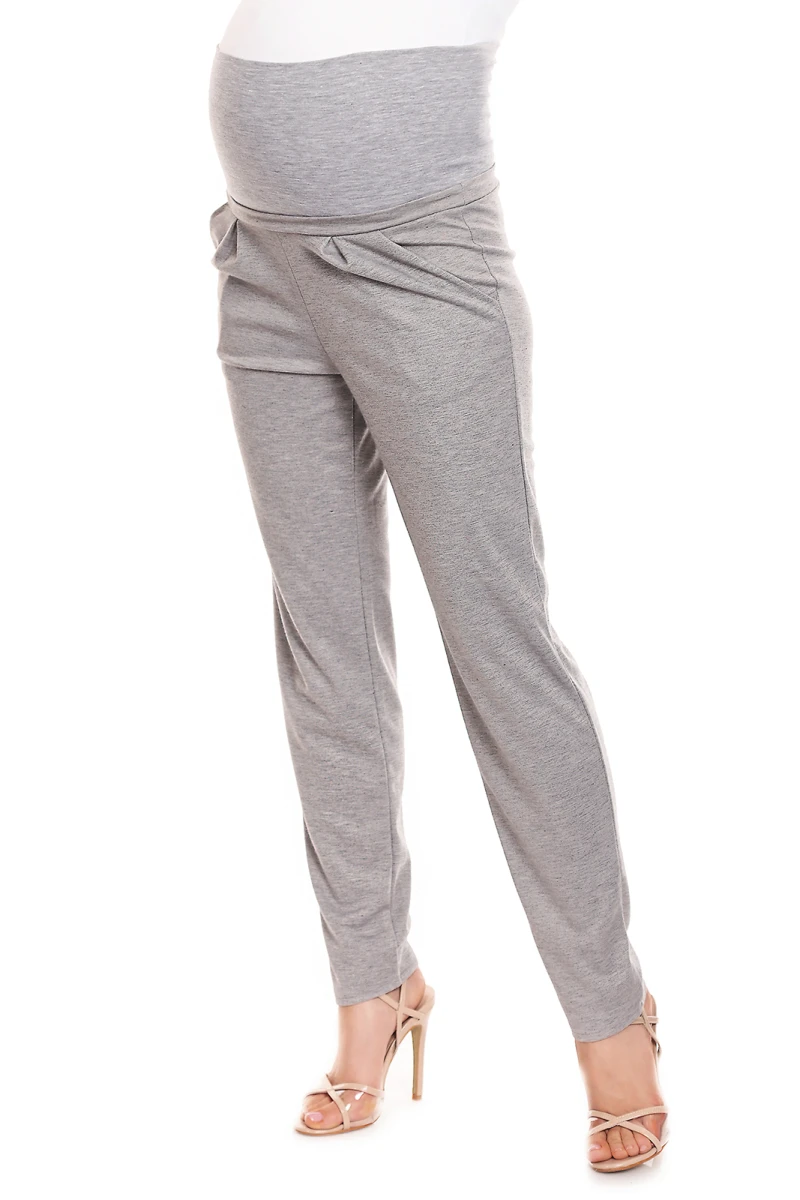 Těhotenské kalhoty s pružným, vysokým pásem Šedé