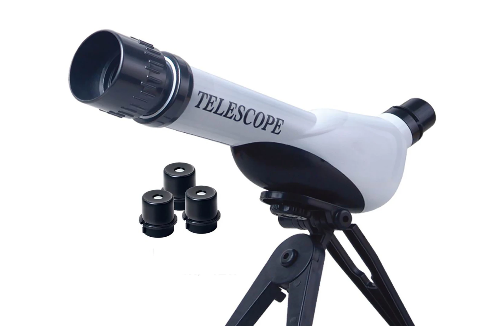 Obsahuje teleskop, stativ, vyměnitelné čočky s různým přiblížením.