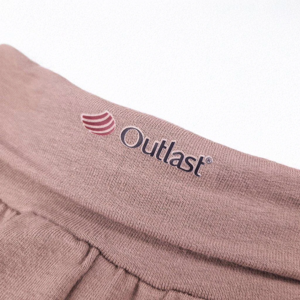 Tepláky jsou vyrobené z kvalitního bavlněného úpletu s příměsí termoregulačního materiálu Outlast®, který reguluje tělesnou teplotu dítěte. Při nadměrném zahřátí materiál Outlast® dokáže odvést nadbytečné teplo dřív, než se dítě zpotí. Při poklesu tělesné teploty materiál Outlast® uložené teplo uvolní a zahřeje. Oblečení s materiálem Outlast® tak zajišťuje teplotní komfort za jakékoliv situace.