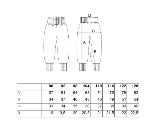 | Velikost | 86 / 92 / 98 / 104 / 116 / 122 / 128 |