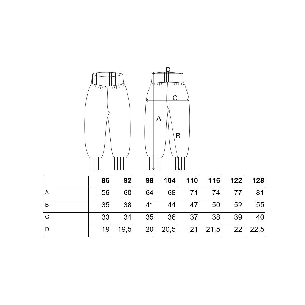 | Velikost | 86 / 92 / 98 / 104 / 110 / 116 / 122 / 128 |
