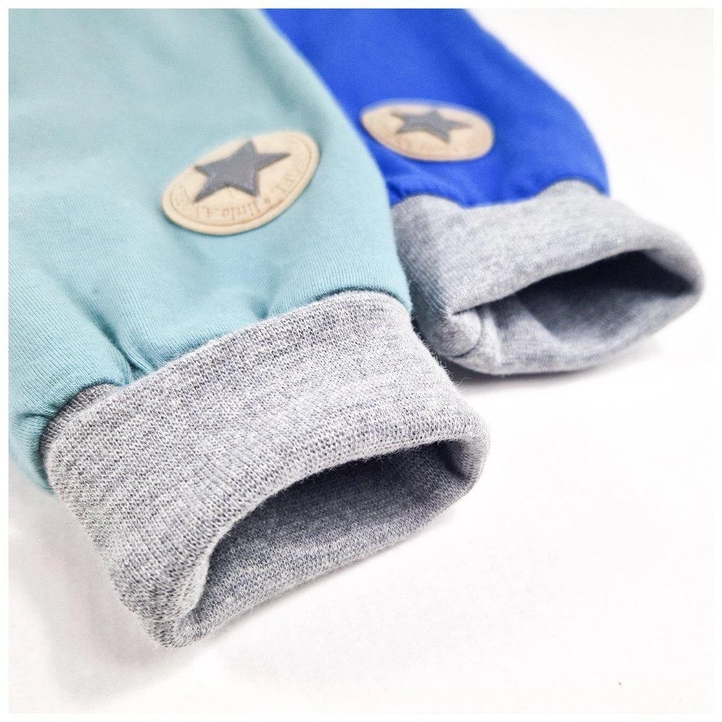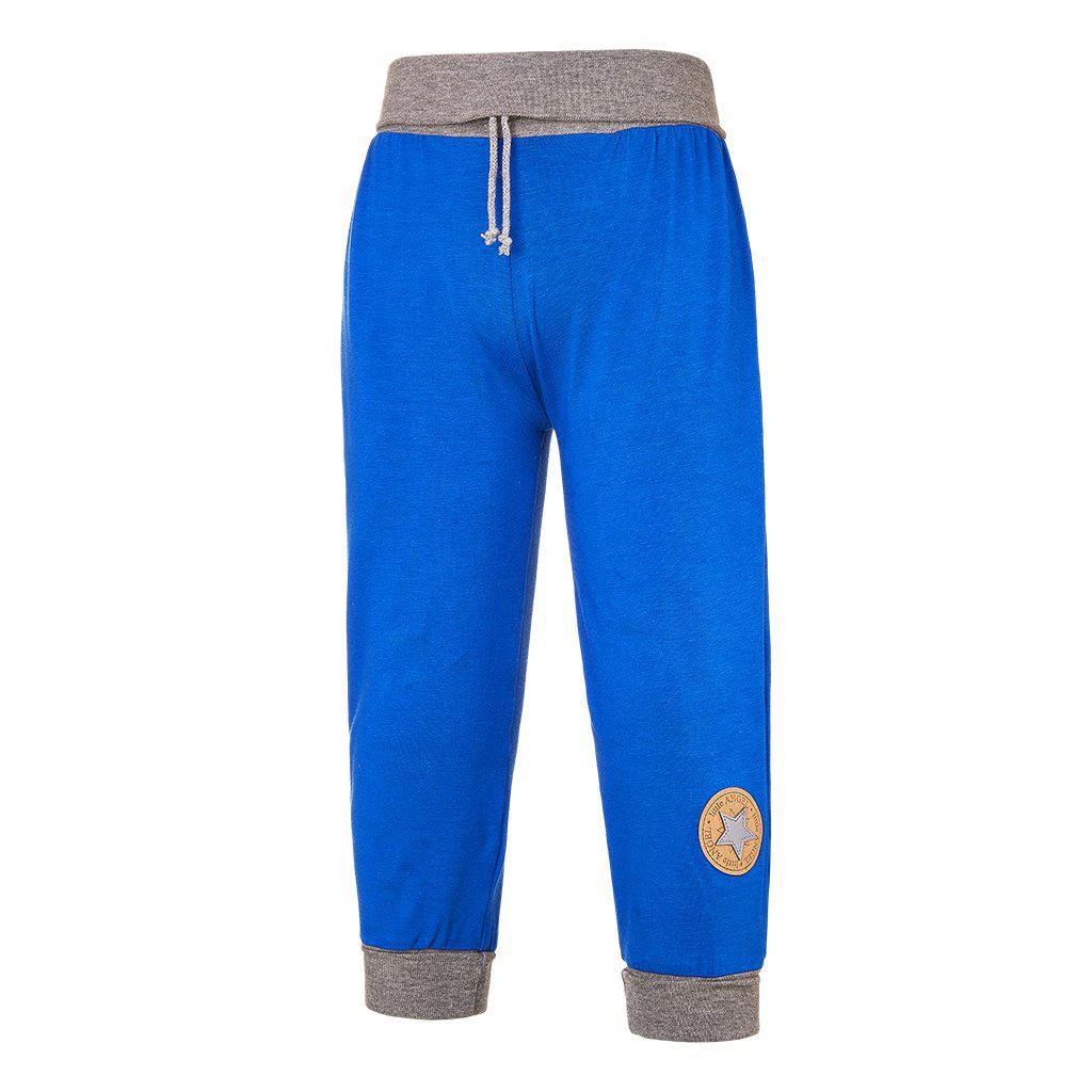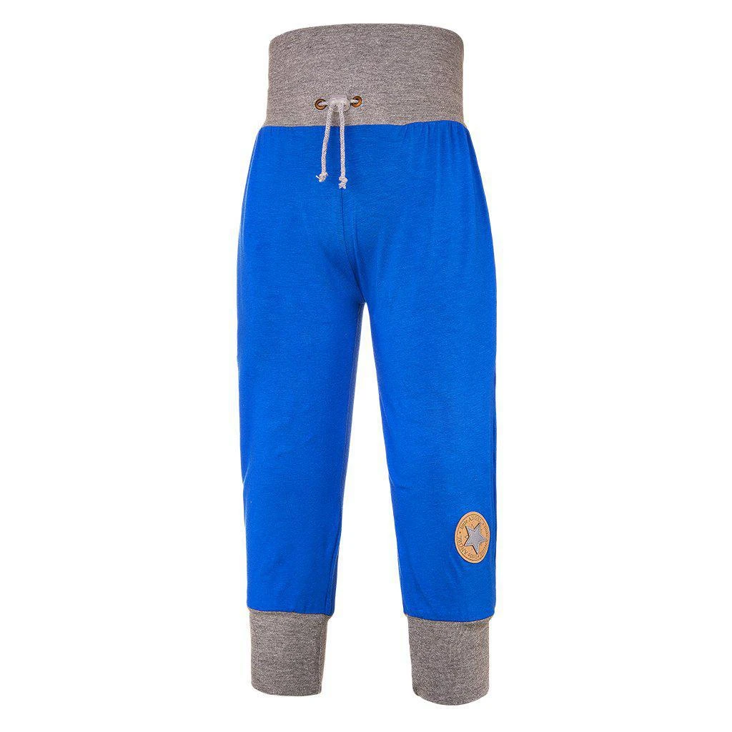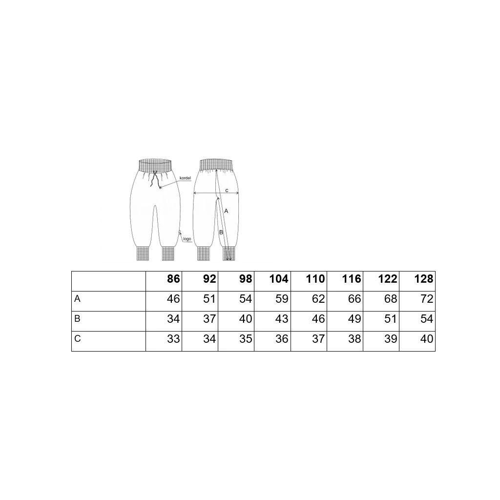 Tepláky s kapsou mají široký pružný náplet v pase a na nohavicích. Díky tomu tepláčky drží, nelezou, neodstávají a přizpůsobí se každému tvaru tělíčka. Jsou pohodlné a pružné. Ohrnutím nebo spuštěním nápletů na nohavicích a v pase můžete regulovat délku tepláků, když dítě povyroste. Reflexní logo na dolní části nohavice podporuje viditelnost.
