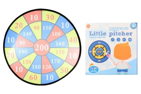 Velký terč s míčky na suchý zip. Průměr terče cca 71 cm. Balení obsahuje 3 míčky. Rozměry balení cca 26 x 26 x 5,5 cm. Věk 3+