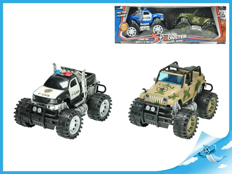 Sada obsahuje policejní a vojenské terénní auta na setrvačník.
