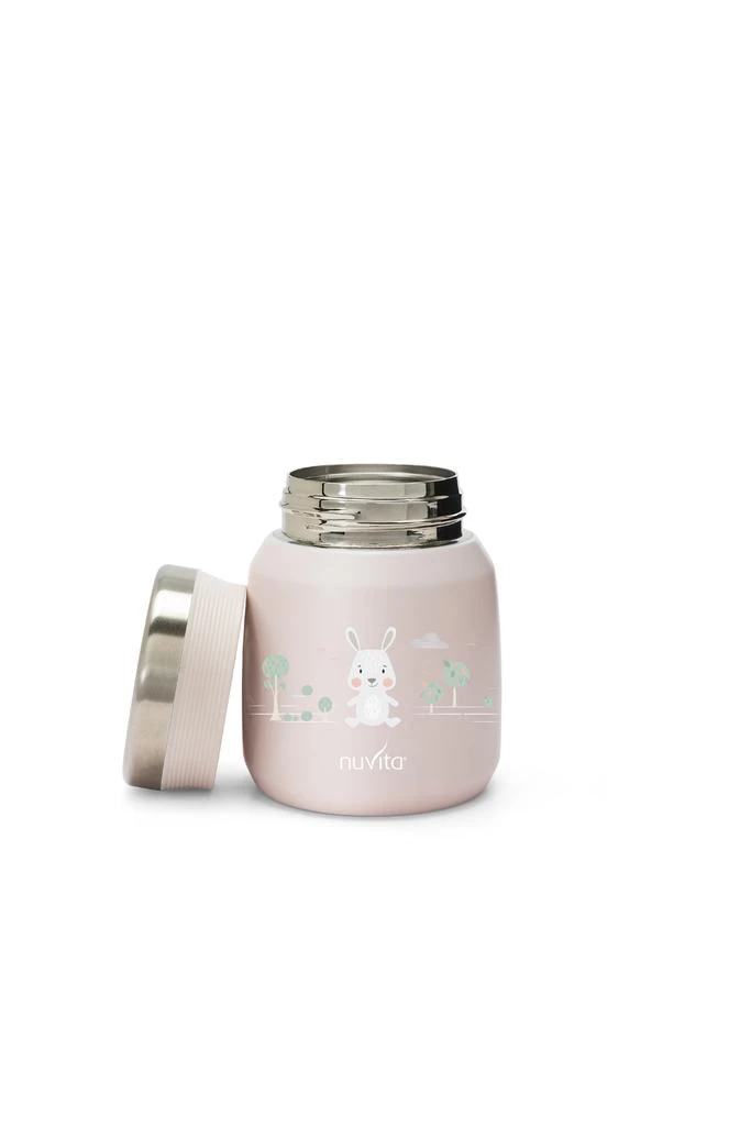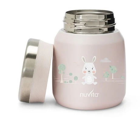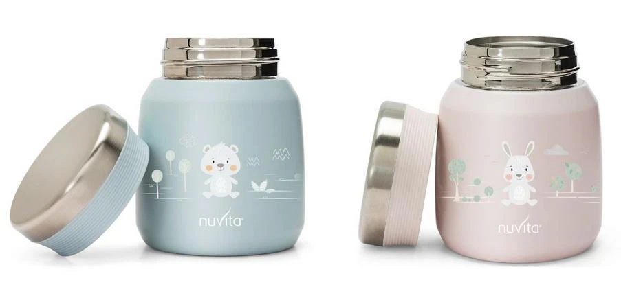 Napapané a spokojené dítko je zárukou klidného cestování nebo pohodového výletu. Proto buďte připraveni a mějte s sebou jeho oblíbené jídlo v ideální teplotě a připravené k podávání. S tím vám pomůže termoska Nuvita, která byla přímo stvořena pro uchovávání polévek, kaší a dalších teplých dětských dobrot. Termoska má široké hrdlo, aby se bez problémů dala naplnit a také čistit. Tělo z dvojité nerez oceli je pak zárukou, že obsah bude dokonale izolován a vydrží v požadované teplotě dlouhou dobu. Pogumovaný povrch je zase příjemný na dotek a zajišťuje bezpečný úchop zamezující jejímu vyklouznutí z ruky. Dětskou termosku na jídlo Nuvita můžete mýt v myčce nádobí.