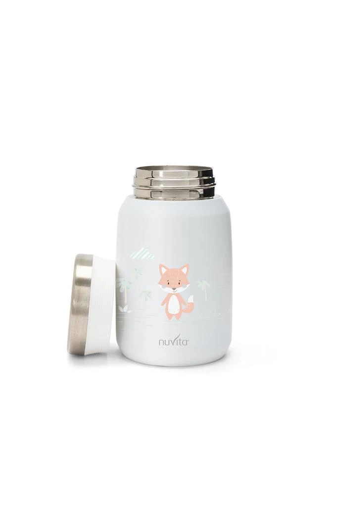 Usnadněte si cestování s vašimi nejmenšími. Nerezová termoska Nuvita o objemu 500 ml uskladní a uchová čaje, příkrmy, kaše či polévky. Dvojitá stěna a vzduchotěsné provedení zaručují, že obsah termosky zůstane studený či teplý po dobu několika hodin. Díky širokému hrdlu termosku snadno naplníte i vyprázdníte. Nerezové víčko s pogumovanou částí vám umožní pohodlné otevírání. Termosku je možné mýt v myčce nádobí.