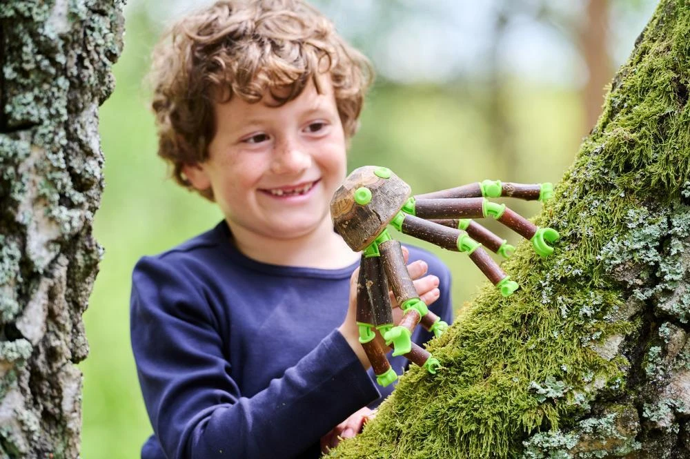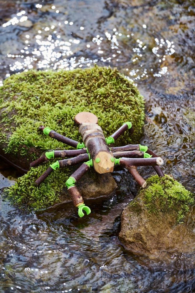 Obsah: 1 ruční vrtačka (průměr 6 mm), 17 dřevěných částí, 75 konektorů, 1 kulatá tyč, návod.