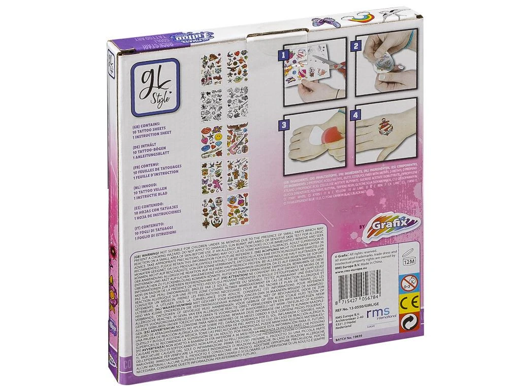 Tetovací sada pro holky obsahuje 10 archů s tetováním. Velice snadnáaplikace.