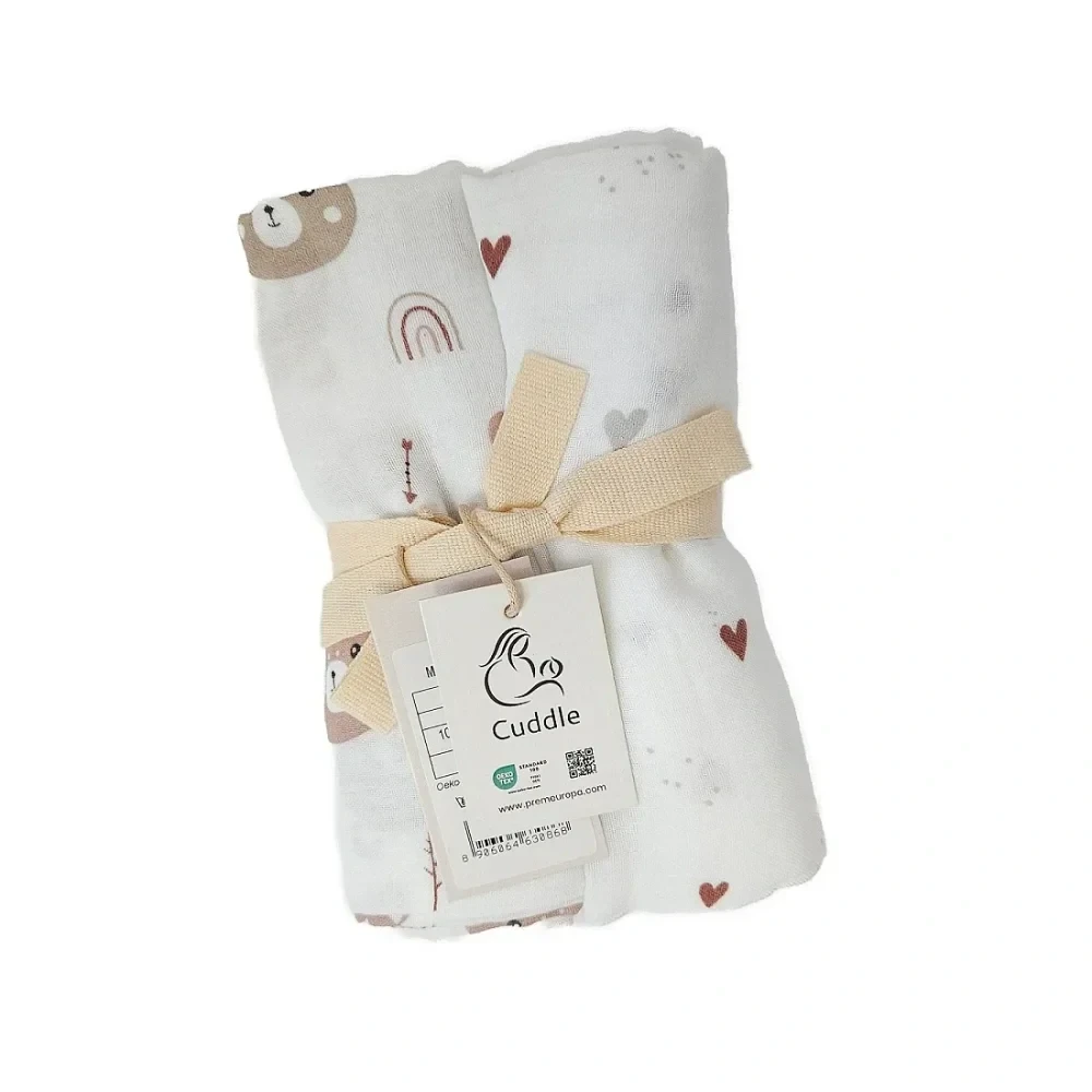 Mušelínové pleny Prem jsou vyrobeny z jemné a prodyšné bavlny, která je šetrná k citlivé dětské pokožce a vhodná pro každodenní použití. Díky rozměru 70 × 70 cm mají univerzální využití – poslouží jako lehká přikrývka, osuška po koupání, podložka při přebalování nebo ochrana při kojení. Mušelín je lehký, dobře saje vlhkost a s každým praním ještě více změkne. V balení se nachází dvě pleny s jemnými motivy karamelových srdíček a roztomilého méďi se šípy, které dodávají sadě hravý a zároveň elegantní vzhled. Pleny jsou odolné, drží tvar i barvy a jsou vhodné pro miminka již od narození.