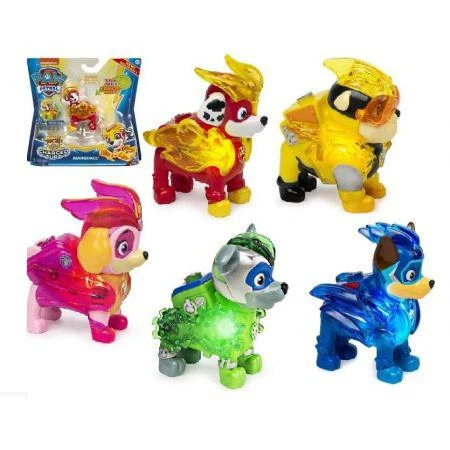 Svítící postavičky štěňat superhrdinů z nové řady Mighty pups. Stisknutím tlačítka na batohu aktivujete funkci světelného efektu –průsvitné detaily uniformy se rozzáří, stejně jako v seriálu.