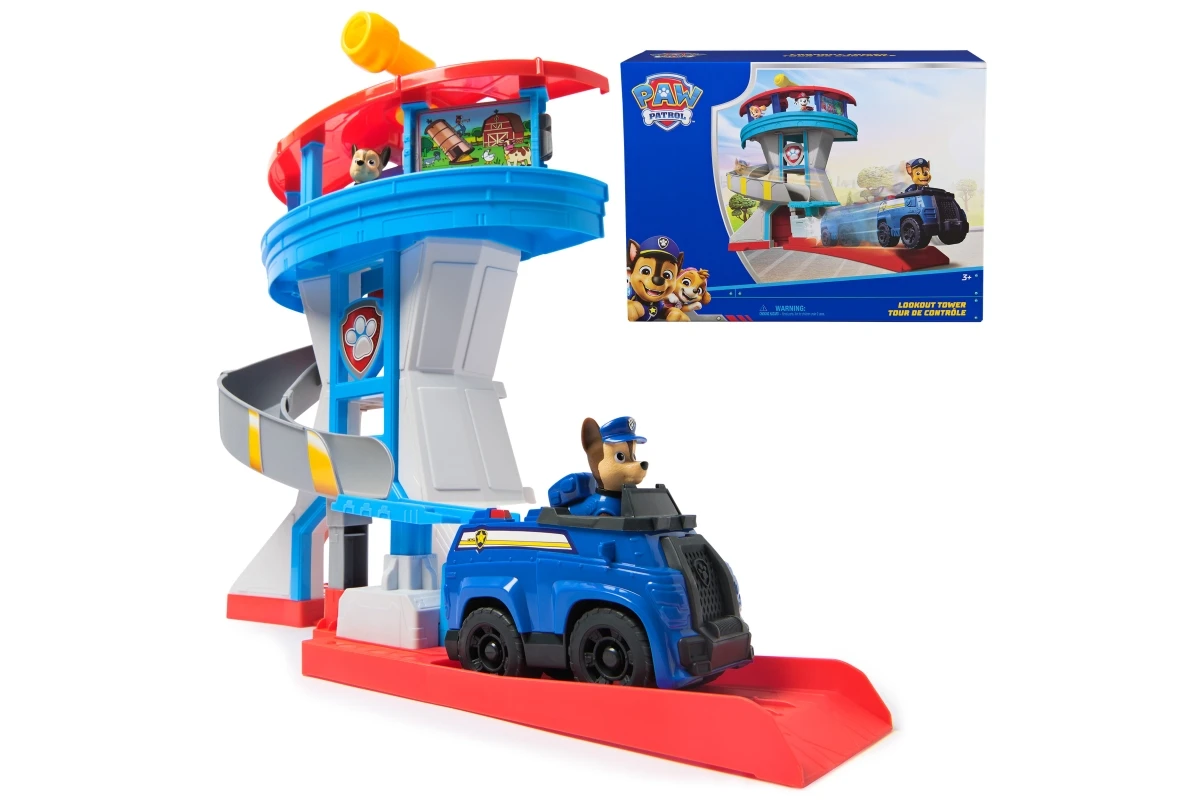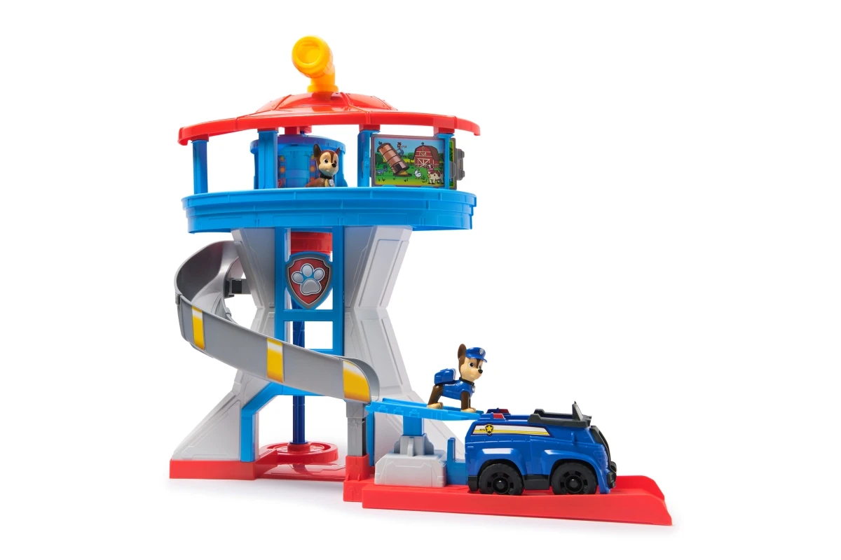 Vstup do světa hrdinů s touto detailní hrací sadou inspirovanou Tlapkovou Patrolou. Součástí je impozantní hlídkovací věž vysoká 51 cm, policejní vůz a dvě figurky Chase – jedna v běžném režimu a druhá jako hrdina připravený k zásahu.
