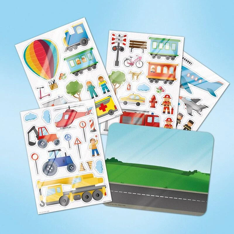Balení obsahuje: více než 55 ks adhezních tematických samolepek, hrací plochu.