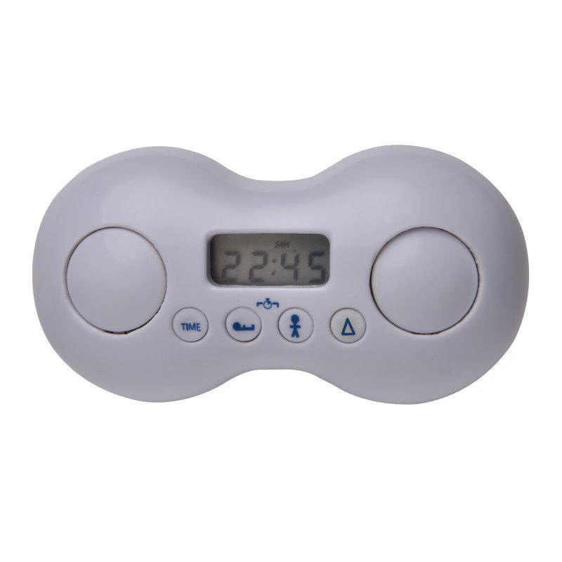 - jednoduchým stisknutím se rozsvítí hlavička - svítí-li modře, je čas spinkat, rozsvítí-li se žlutě, je čas na vstávání (časy se nastavují na ovládácím panelu, který je uložen uvnitř)