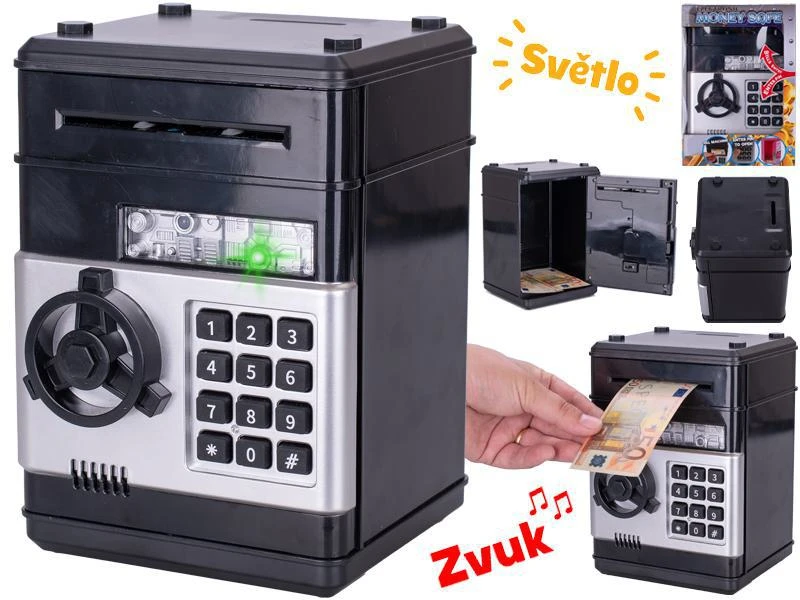 Trezor - 19,5cm s odemykáním na kód - se světlem, zvukem a penězi černá