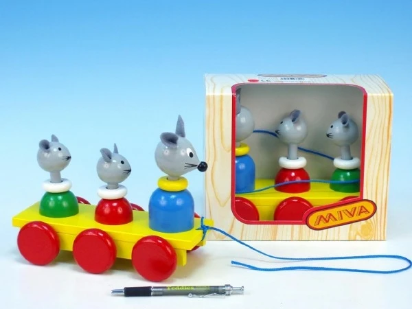 Tři myšky dřevo tahací barevné 22cm. Dřevěná tahací hračka pro malé děti. Je vyrobena z kvalitního dřeva. Vhodné pro děti od 12 měsíců.