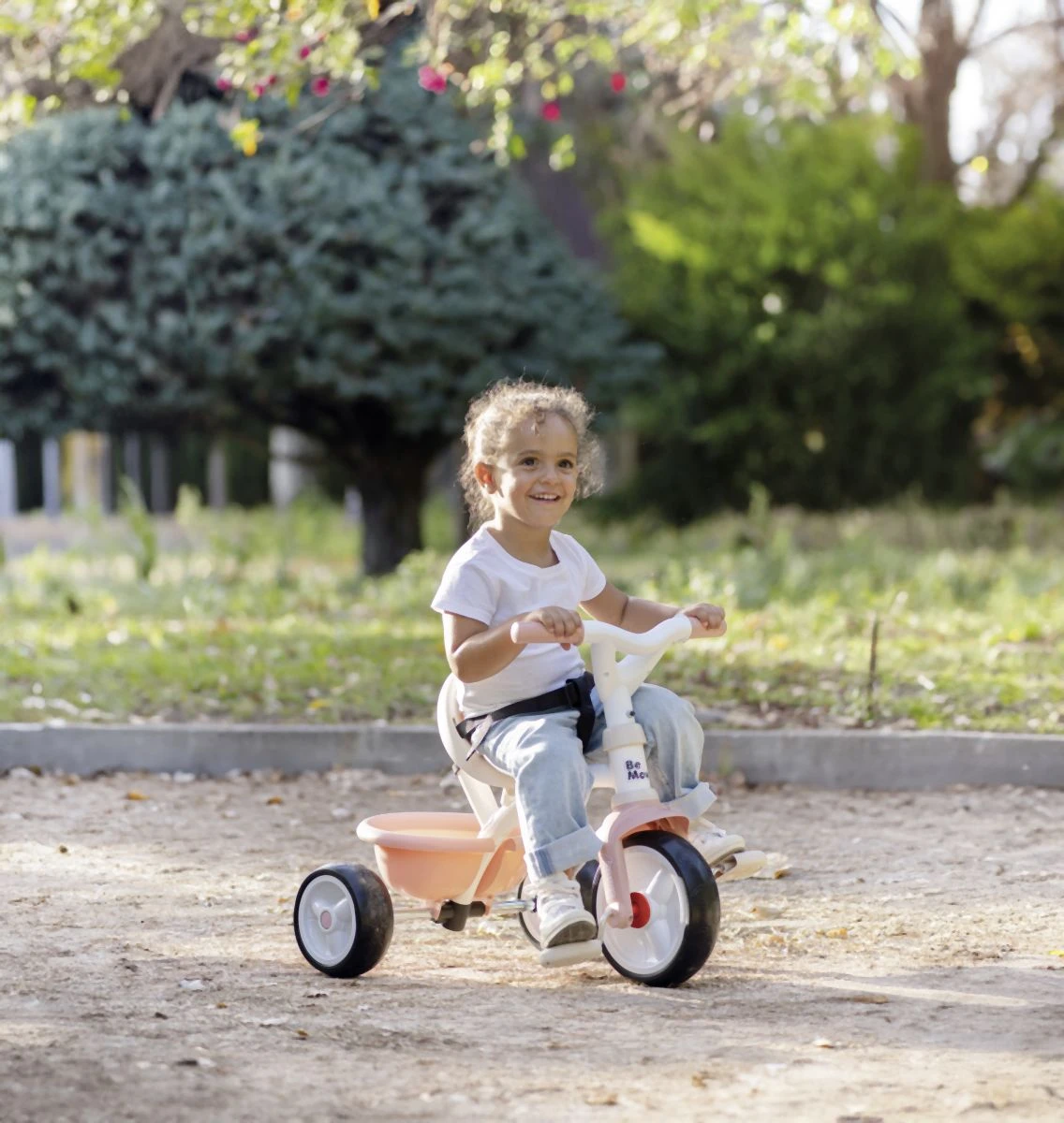 Tříkolka je vybavena ergonomickým sedadlem nastavitelným do dvou pozic, bezpečnostním pásem a praktickým výklopným plastovým košíkem na hračky nebo drobnosti. Tichá kolečka zajišťují plynulou jízdu doma i venku bez rušivého hluku. Hra s tříkolkou podporuje rozvoj koordinace, rovnováhy a samostatnosti dítěte.