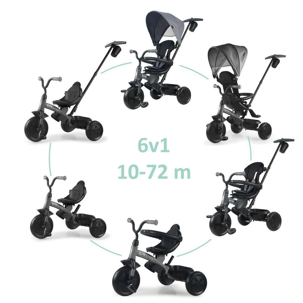Tříkolka Elite Platinum 6v1 je skvělým řešením pro rodiče, kteří hledají praktický, bezpečný a pohodlný prostředek, který je bude provázet během všech vývojových fází dítěte. Díky svým univerzálním funkcím, bezpečnostním prvkům a odolným kolům je tento model ideální pro každý den a zaručuje skvělý zážitek při každé jízdě.