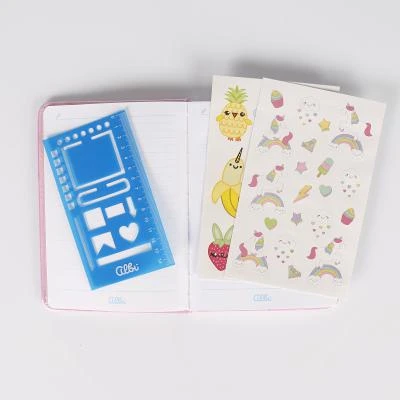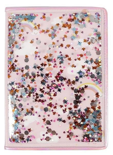 Třpytivé bloky mají veselé flitry, záložku a aršík samolepek určený k dotvoření zápisů.