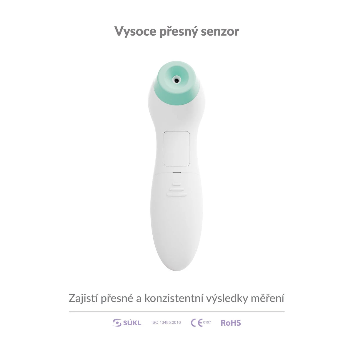 Baterie teploměru vystačí až na 6 000 měření. Ovládání zvládne každý – měření probíhá stiskem jediného tlačítka. Ihned po vybalení je teploměr připraven k použití. Vše potřebné vidíte na LCD displeji. Teploměr má navíc praktické a snadno přenosné tělo.
