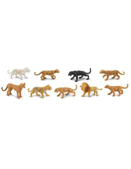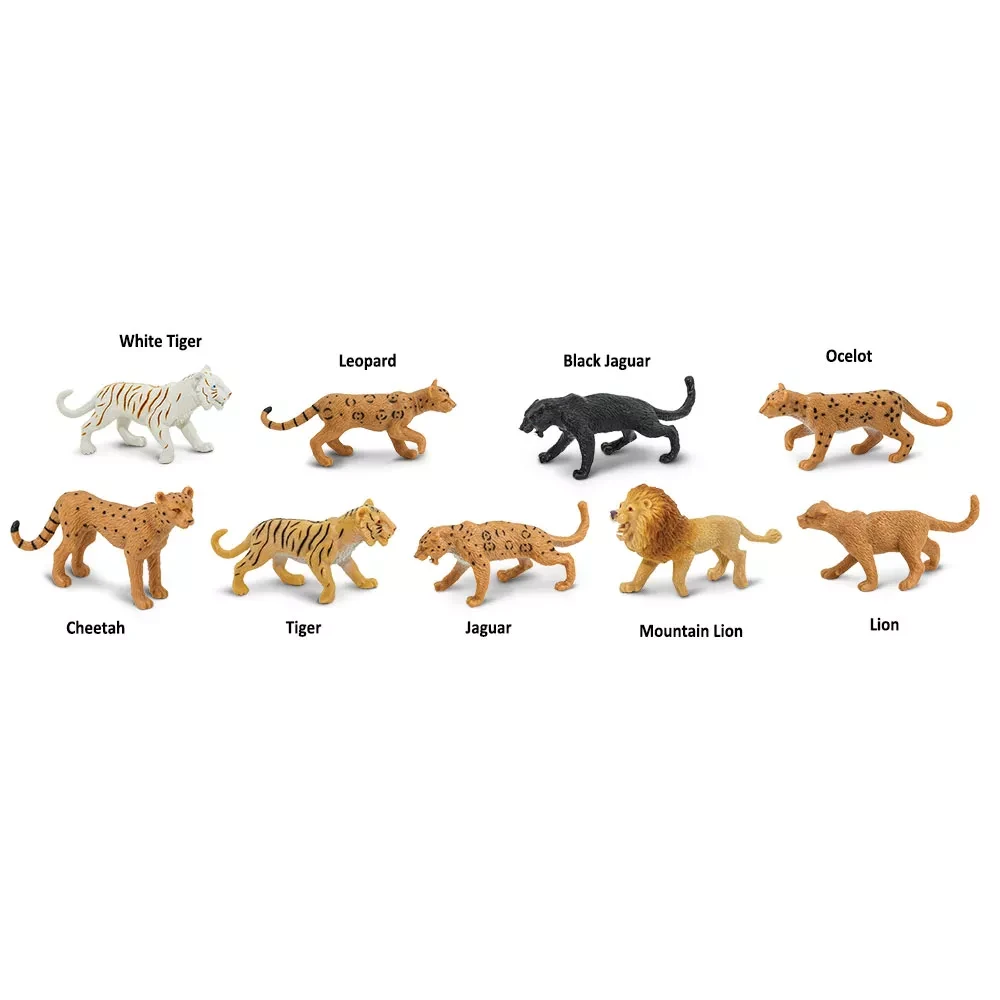 Ručně malované figurky velkých kočkovitých šelem vyvedené v detailech dokáží dítěti pomoci rozeznat typické znaky jednotlivých kočkovitých šelem.