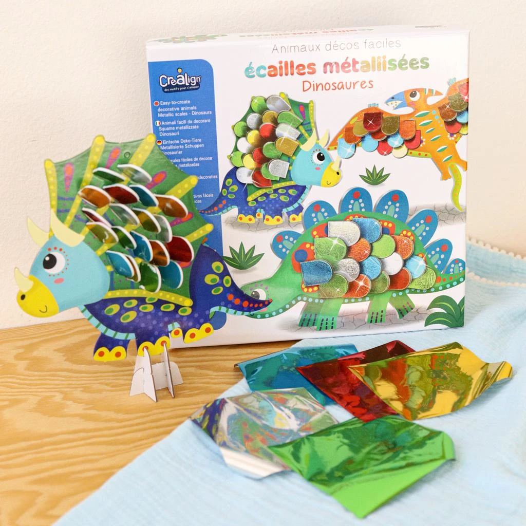 Postup je jednoduchý: děti odlepí šupinu, přiloží ji na papír s metalickou barvou, kde získá jedinečný lesk, a poté ji nalepí na obrázek. Tato technika podporuje rozvoj jemné motoriky, představivosti a kreativity. Produkt je vysoce kvalitní a bezpečný, stejně jako všechny ostatní výrobky značky Crea Lign.