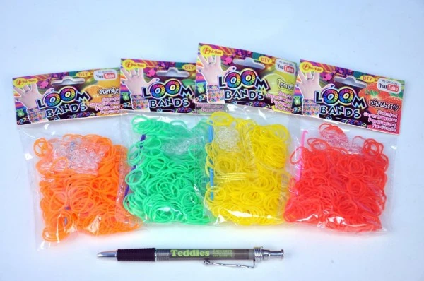 Balení obsahuje 300 ks barevných gumiček a háček. Produkt je vyroben z nezávadného materiálu.