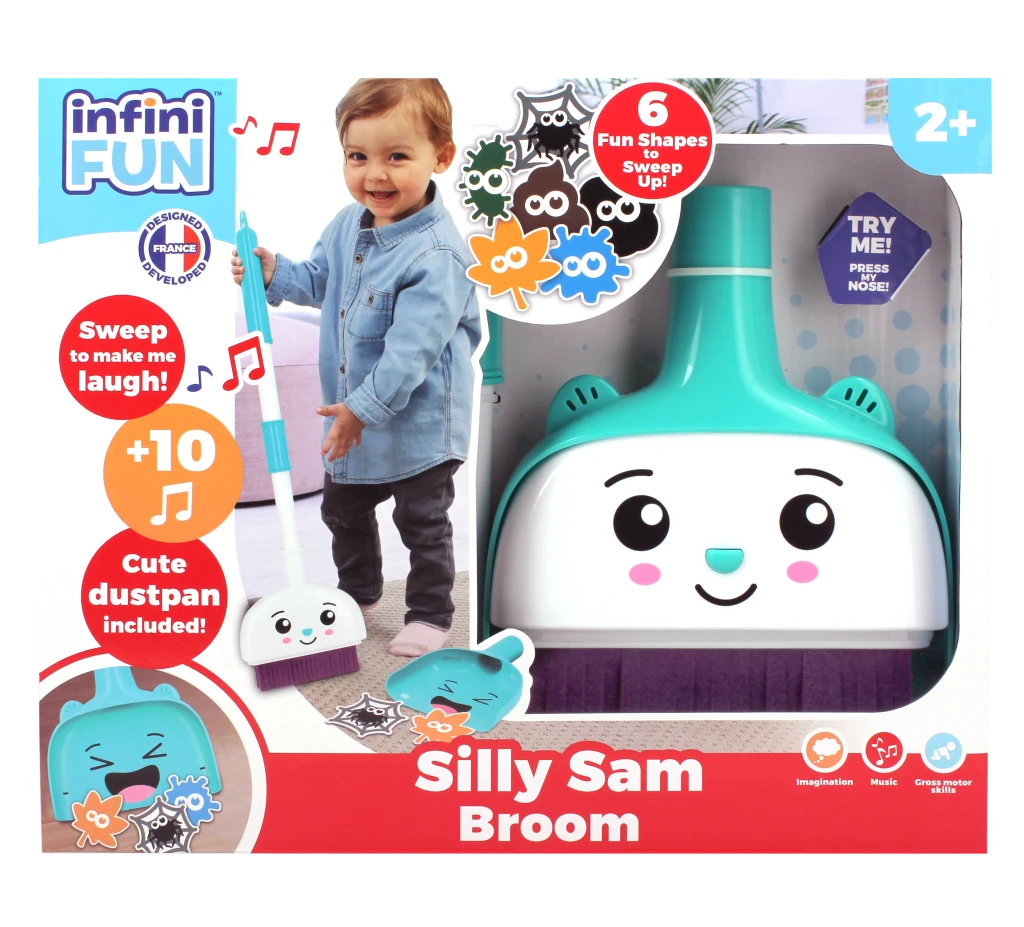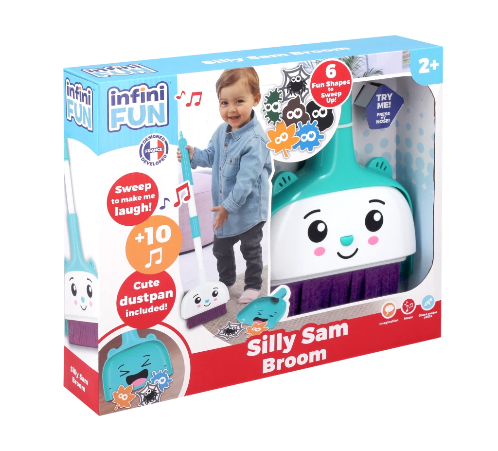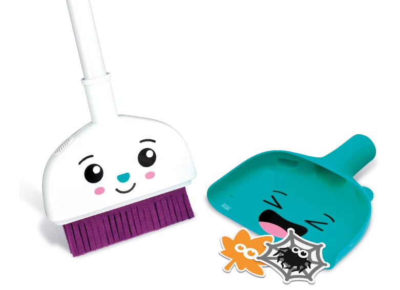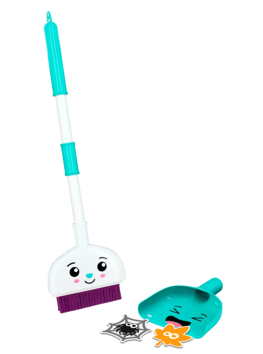 Set s 10 zábavnými zvuky. Stiskni nos a bude se smát! Zametej, aby se rozesmál! Uklízecí sada vyžaduje 2× AAA (R03) 1,5V baterie, které jsou součástí balení.