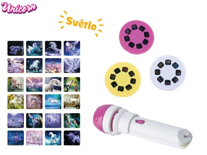 Unicorn projektorová svítilna 11,5 cm na baterie se světlem 24 obrázků
