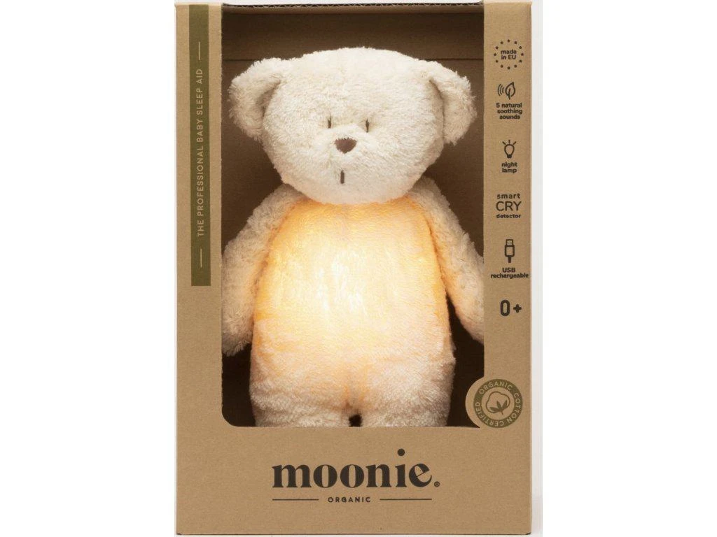Moonie je výrobce specializující se na usínáčky pro děti, které kombinují uklidňující zvuky s nočním světlem. Jejich produkty využívají vysoce kvalitní přirozený růžový šum, který není generován počítačem. Zvuk tlukotu srdce je skutečnou nahrávkou z matčina lůna, což pomáhá dětem cítit se bezpečně díky známému zvuku. Zvuky mořských vln byly nahrány u Baltského moře a zvuky lesního potoka v Tarachu. Usínáčky Moonie jsou vyrobeny z organické bavlny s certifikací GOTS a jsou nabíjeny přes USB kabel, což eliminuje potřebu dokupování baterií.