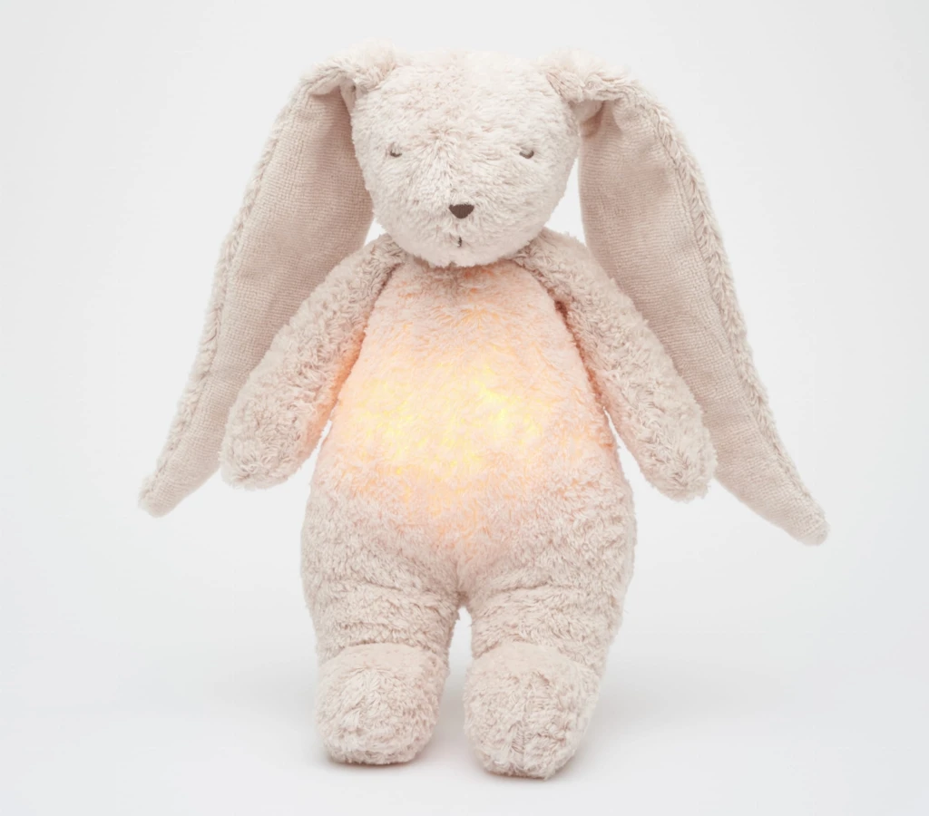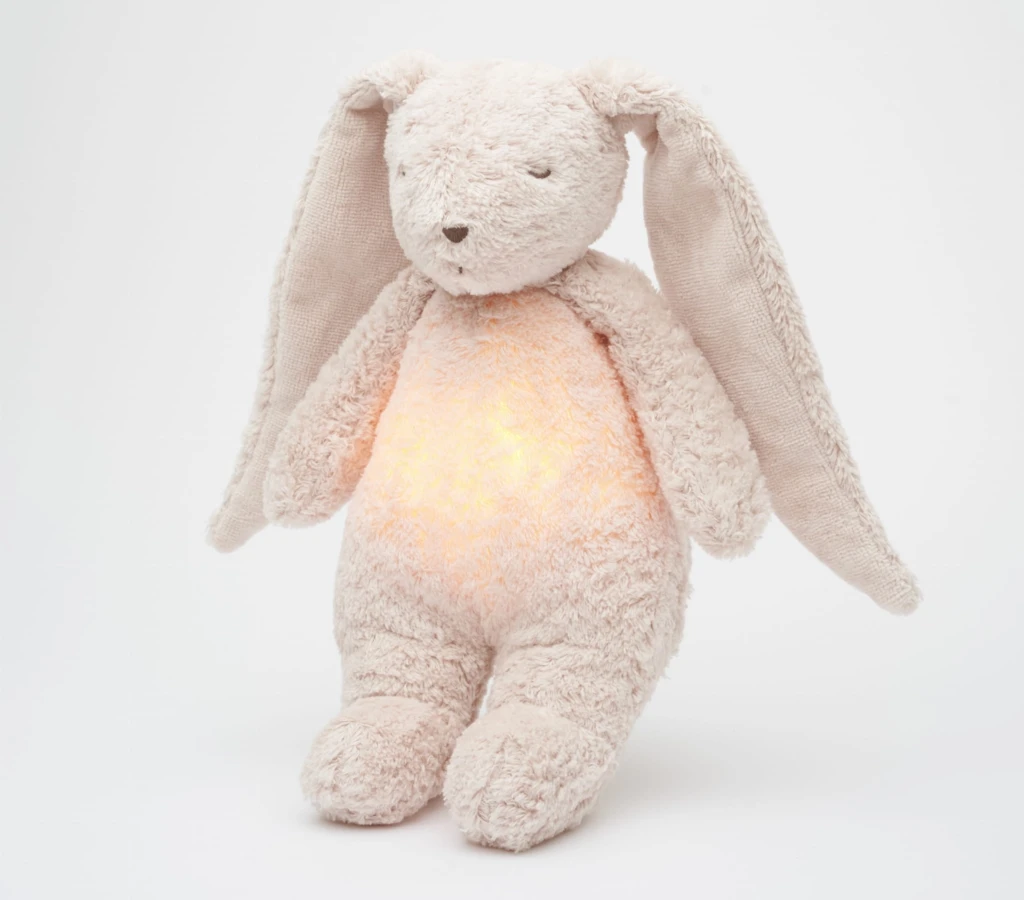 Bříško zajíčka svítí a slouží jako noční světlo s výběrem sedmi barev svícení. Jemné světlo pomáhá dítěti cítit se v postýlce bezpečně. Světlo je možné zapnout i bez zvuků. Při zapnuté funkci Shake světlo zapnete zatřesením hračkou. Zajíček se při svícení nijak nezahřívá a je pro dítě zcela bezpečný.