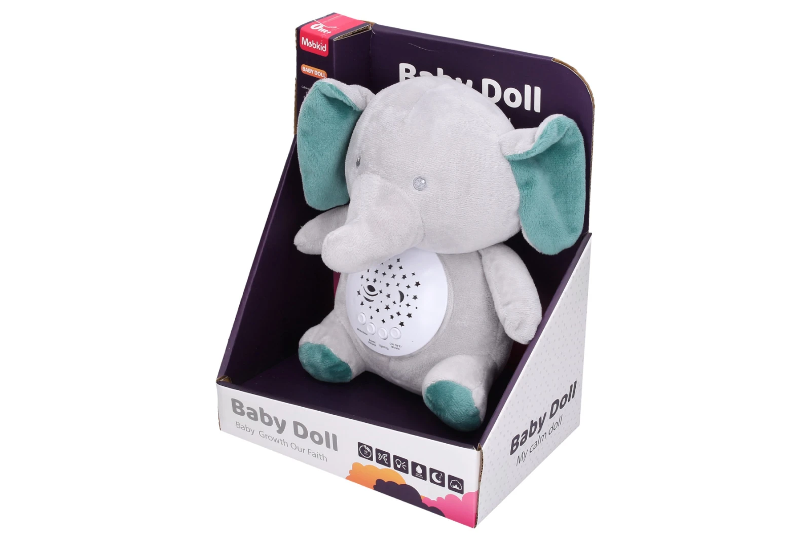 Funkce světla - 7 barev, mohou se automaticky měnit. 10 melodií, 4 bílý šum. Možnost nastavení hlasitosti. Automatické vypnutí po 30 minutách.