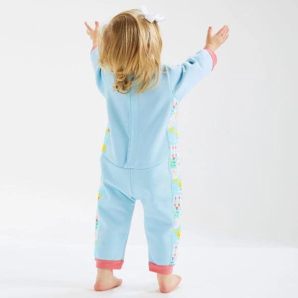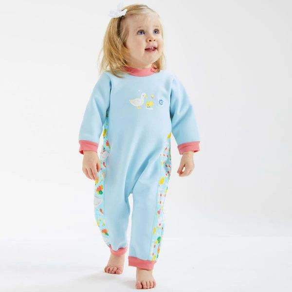 Tato jedinečná dětská neoprenová kombinéza byla navržena tak, aby dětem poskytovala maximální teplo během plavání. Měkký a pohodlný neoprenový obleček zakryje celé tělo a udrží tak děti v teple ve vodě či při chůzi z chladné šatny. Je ideální pro kojence s citlivou pokožkou, nepropustí žádný krém. Jedná se o teplou kombinézu s fleecovou podšívkou.
