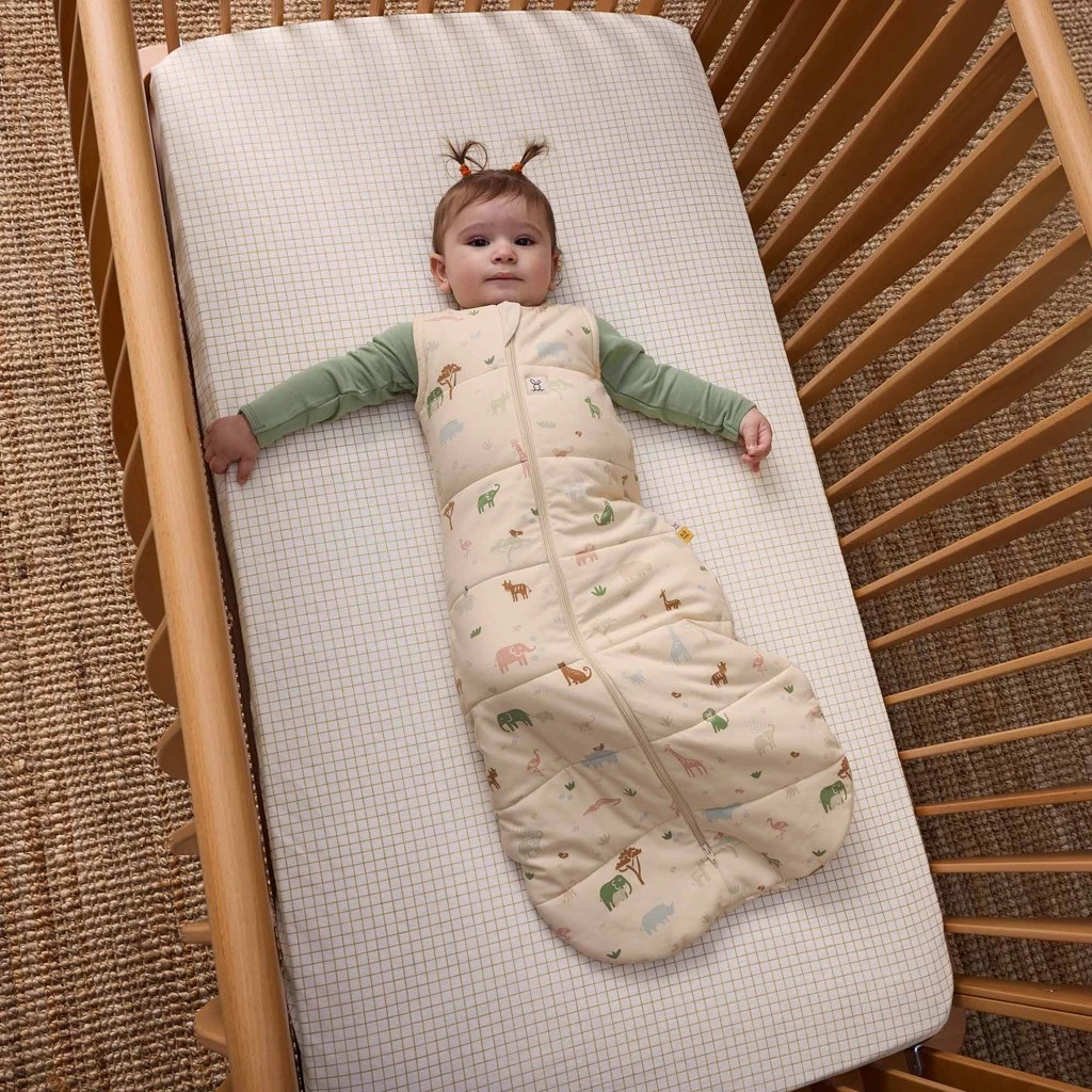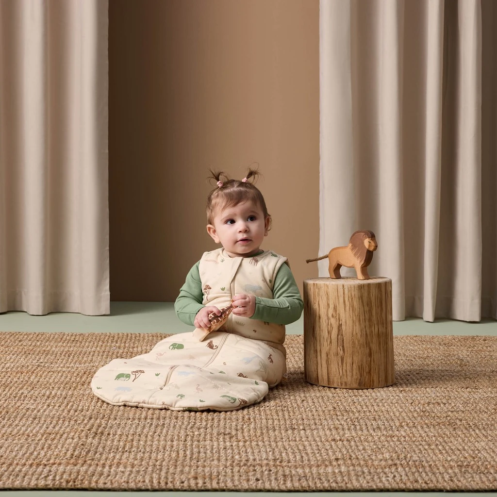 Vak na spaní Jersey 2,5 TOG je ideální pro udržení tepla pro dítě během noci v místnostech o teplotě 17-23 °C. Hodnota 2,5 TOG znamená, že při používání tohoto výrobku nejsou zapotřebí další přikrývky v postýlce, což z něj činí možnost bezpečného spánku. Rodiče si mohou být jisti, že prodyšná organická a přírodní vlákna pomáhají regulovat teplotu dítěte a zabraňují přehřátí. Rodiče se mohou řídit pokojovým teploměrem ZDARMA a příručkou What to Wear (Co si obléct), které jsou součástí výrobku, a vhodně pod ně navrstvovat vrstvy, aby jejich dítě zůstalo v teple.