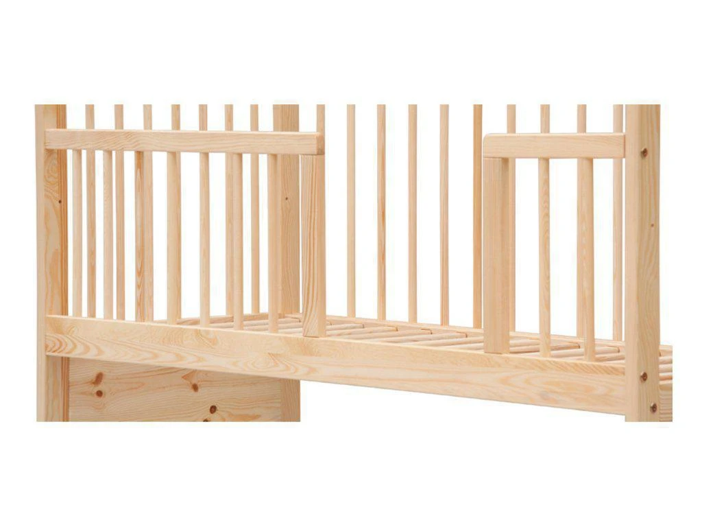 Bočnice je vyráběna z borovicového dřeva. Bočnici je možné, za použití vhodného nářadí, doplnit k jakékoli postýlce o rozměru 120 x 60 cm z naší nabídky.