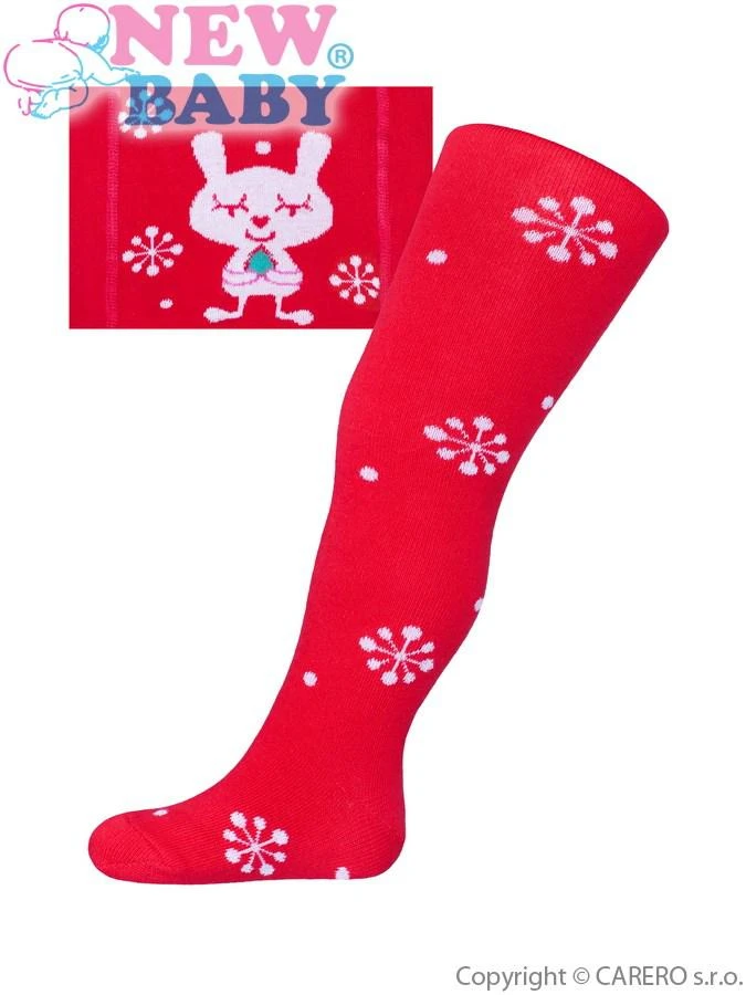 Vánoční bavlněné punčocháčky New Baby Červené s vločkami a kočičkou