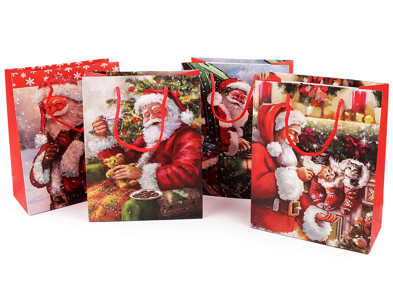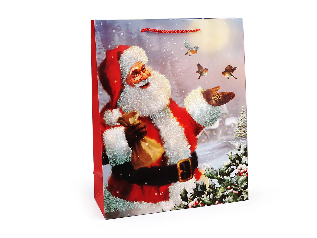 Vánoční dárková taška s glitry 32 x 26 x 10 cm Santa 2
