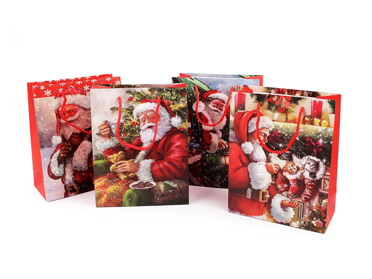 Vánoční dárková taška s glitry 18 x 23 x 8 cm Santa 1