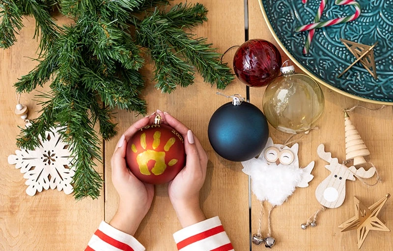 Jednoduchý způsob, jak vytvořit osobní vánoční ozdobu s otiskem dítěte.