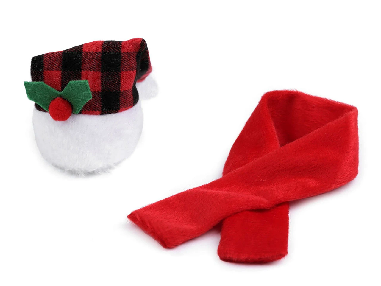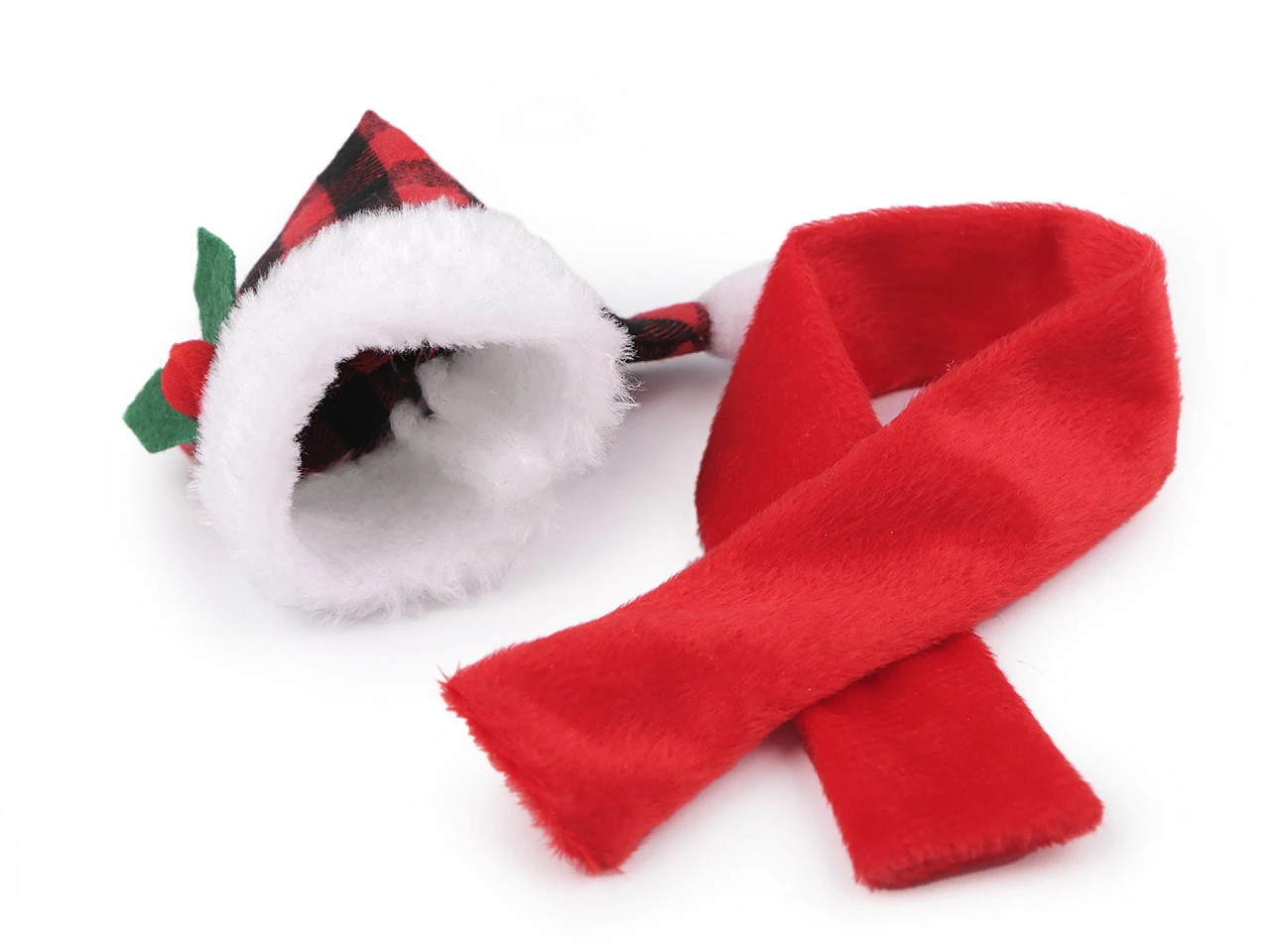 Čepice je lemovaná umělou kožešinkou, šála je z měkkého plyše.