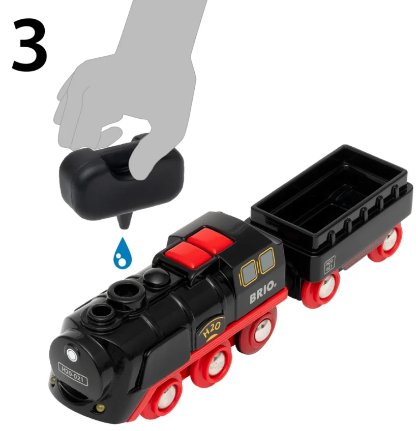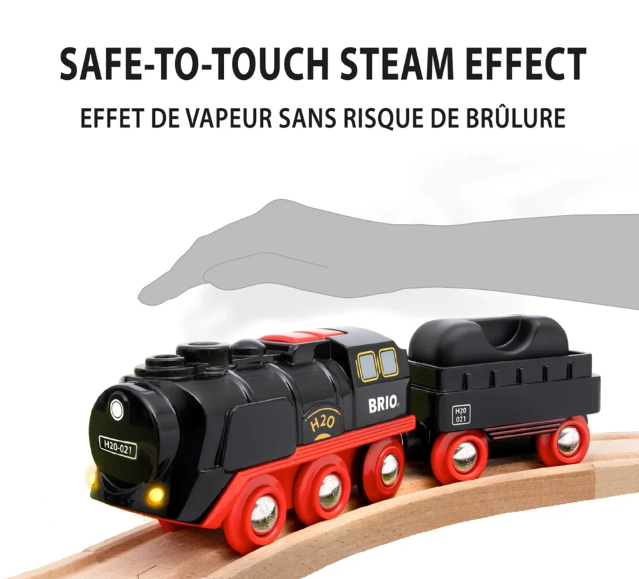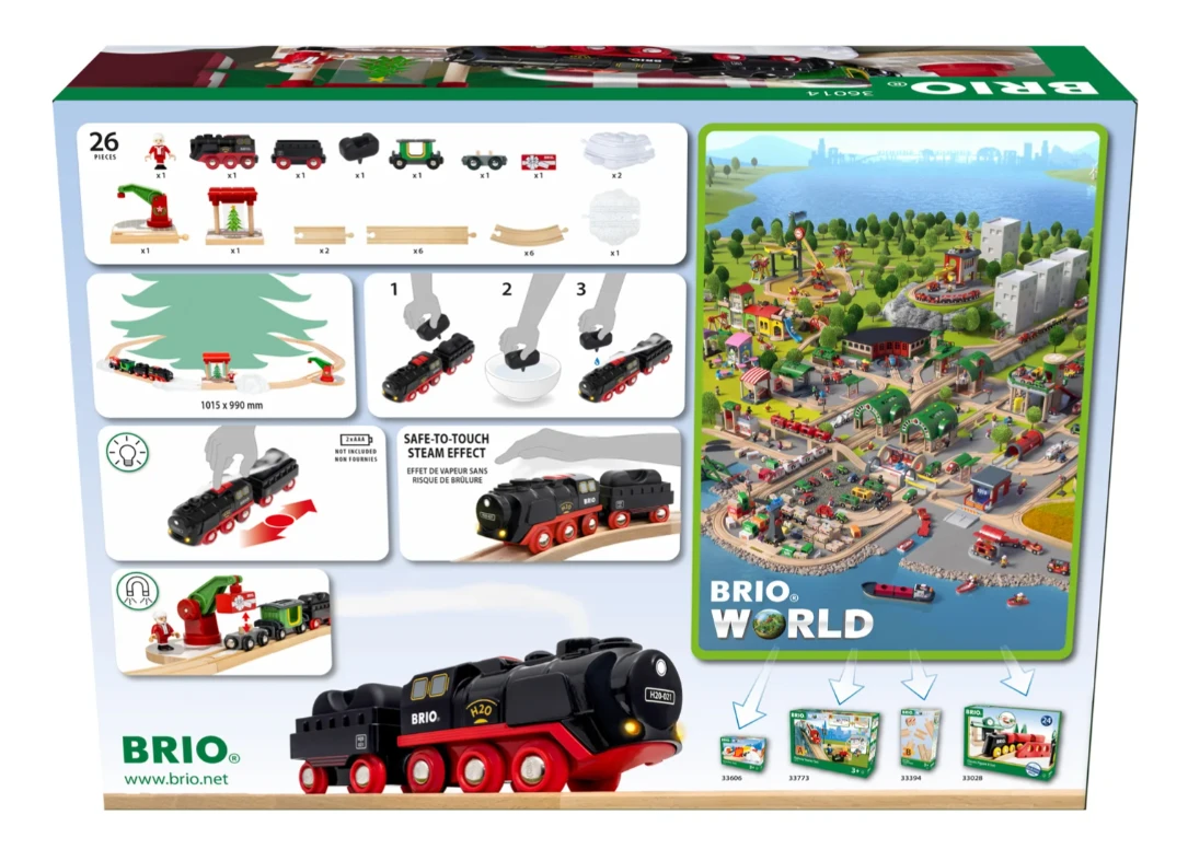 Postavte koleje kolem stojanu vánočního stromku a sledujte, jak se po nich rozjíždí parní lokomotiva s realistickým efektem páry, která je zcela bezpečná a snadno doplnitelná vodou.