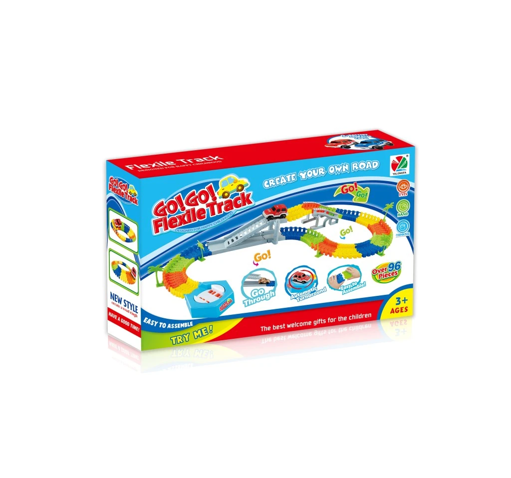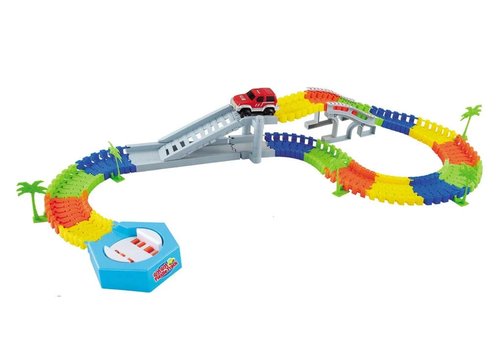 Díly lze snadno spojovat, ohýbat a tvarovat podle fantazie, takže si děti mohou postavit pokaždé jinou trať. Součástí je jedno autíčko, které po zapnutí vyrazí na cestu po šířce kolejnice 7,8 cm.