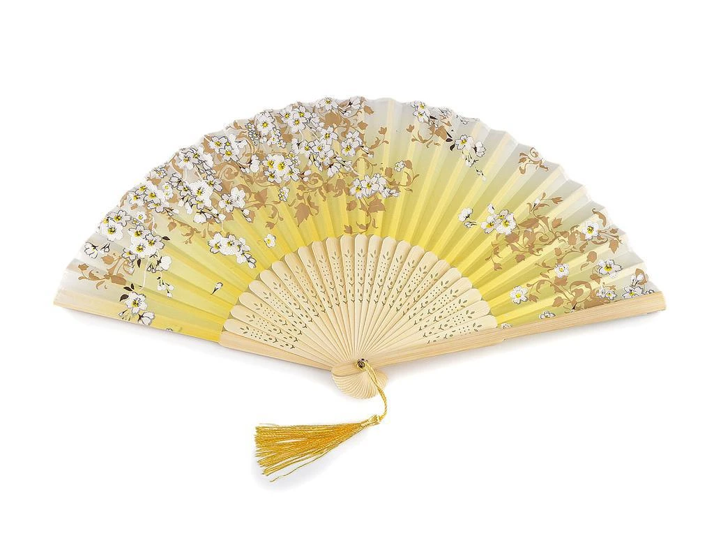 Vějíř textilní s metalickými detaily žlutá