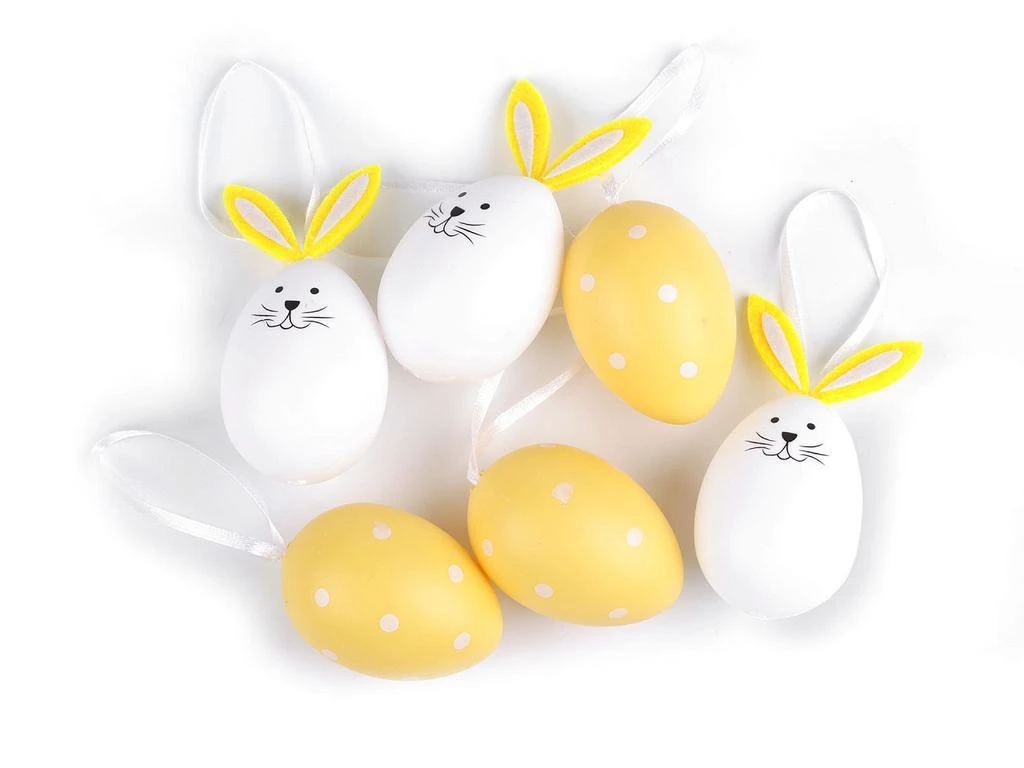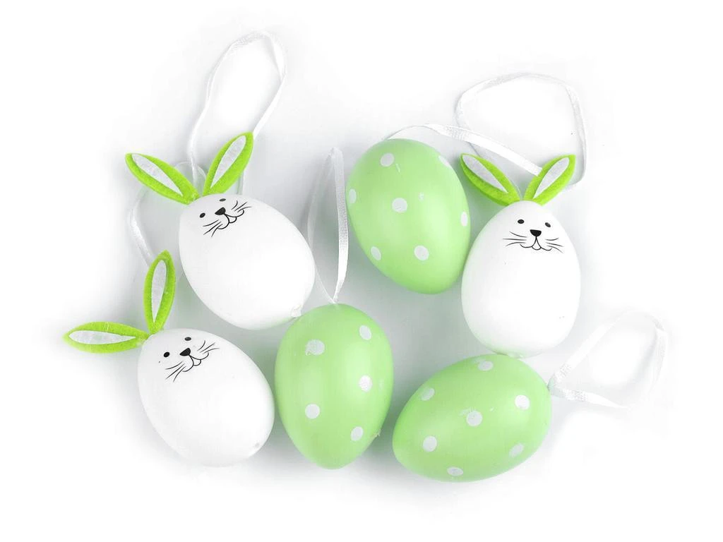 Tři vajíčka v balení jsou s puntíky a tři mají podobu roztomilého zajíčka.