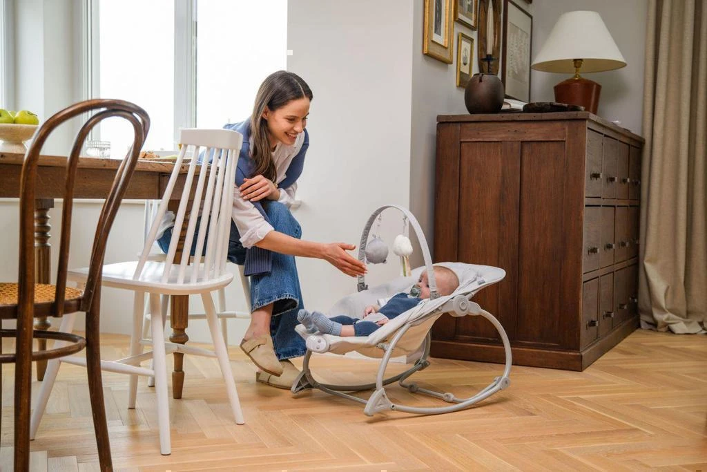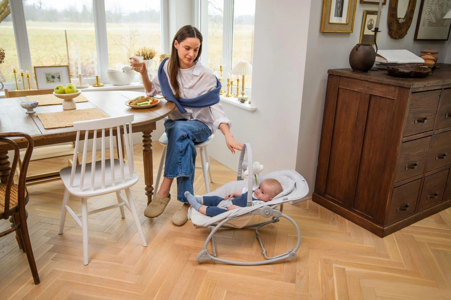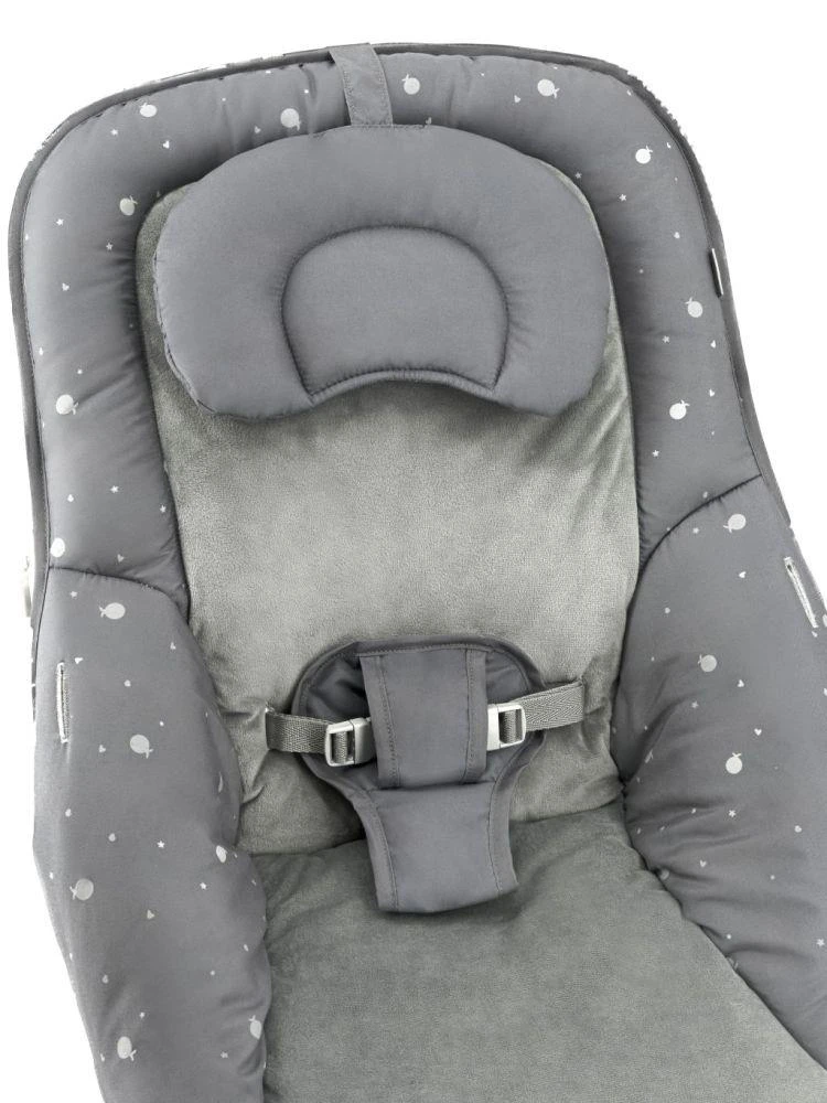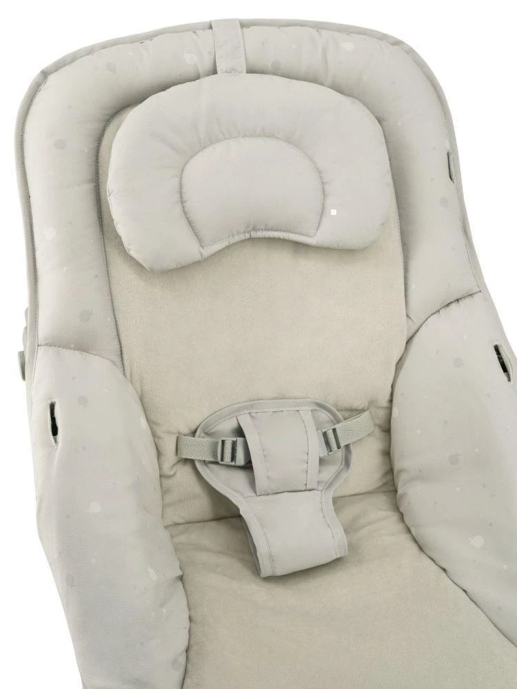 Houpátko je vybaveno senzorickým modulem s melodiemi a jemnými vibracemi a také hrazdičkou s hračkami. Díky nastavitelnému opěradlu lze polohu houpátka snadno přizpůsobit potřebám vašeho dítěte.