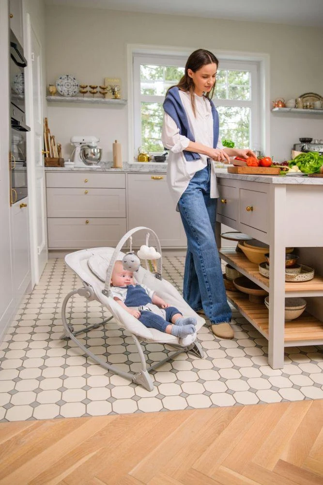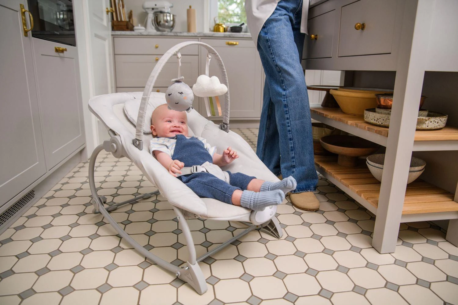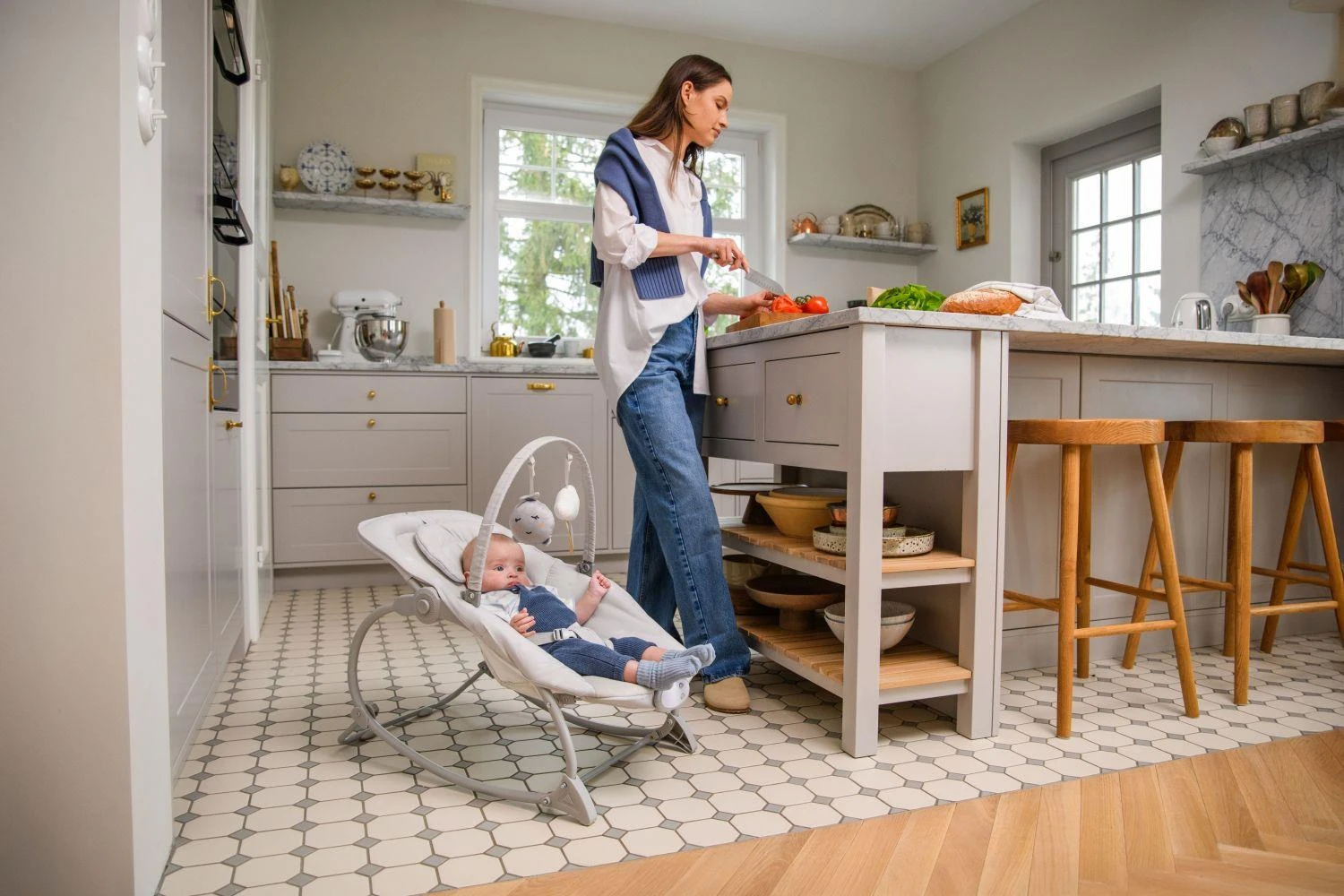 Houpátko je vybaveno senzorickým modulem s melodiemi a jemnými vibracemi a také hrazdičkou s hračkami. Díky nastavitelnému opěradlu lze polohu houpátka snadno přizpůsobit potřebám vašeho dítěte.