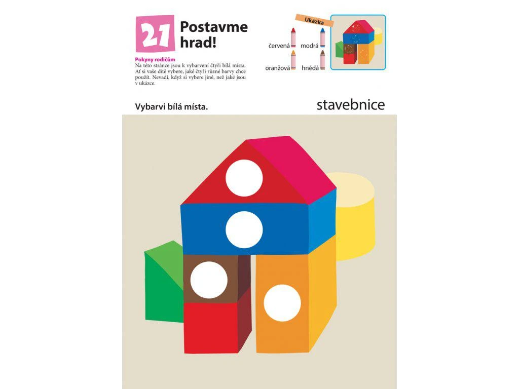 Tento pracovní sešit je určen dětem, které dokončily sešit Vybarvuj! Úroveň aktivit v tomto sešitě je o něco obtížnější než u aktivit z předcházejícího sešitu. Vaše dítě si posílí prsty ruky a bude zručnější a obratnější. To mu pomůže se správným držením a používáním tužky. Pokud je vaše dítě schopno podle své libosti zacházet s tužkou nebo pastelkou či vybarvuje se silným tlakem na papír, pak si již osvojilo základy práce s tužkou. Jak děti postupně vyplňují jednotlivá cvičení, naučí se úhledně vybarvovat pastelkami a budou u nich položeny i základy pro budoucí schopnost psát. Cvičení v tomto sešitě jsou sestavena tak, aby krok za krokem děti provedla různými úrovněmi vybarvování, takže postupují dále až poté, co ovládají tu předchozí.