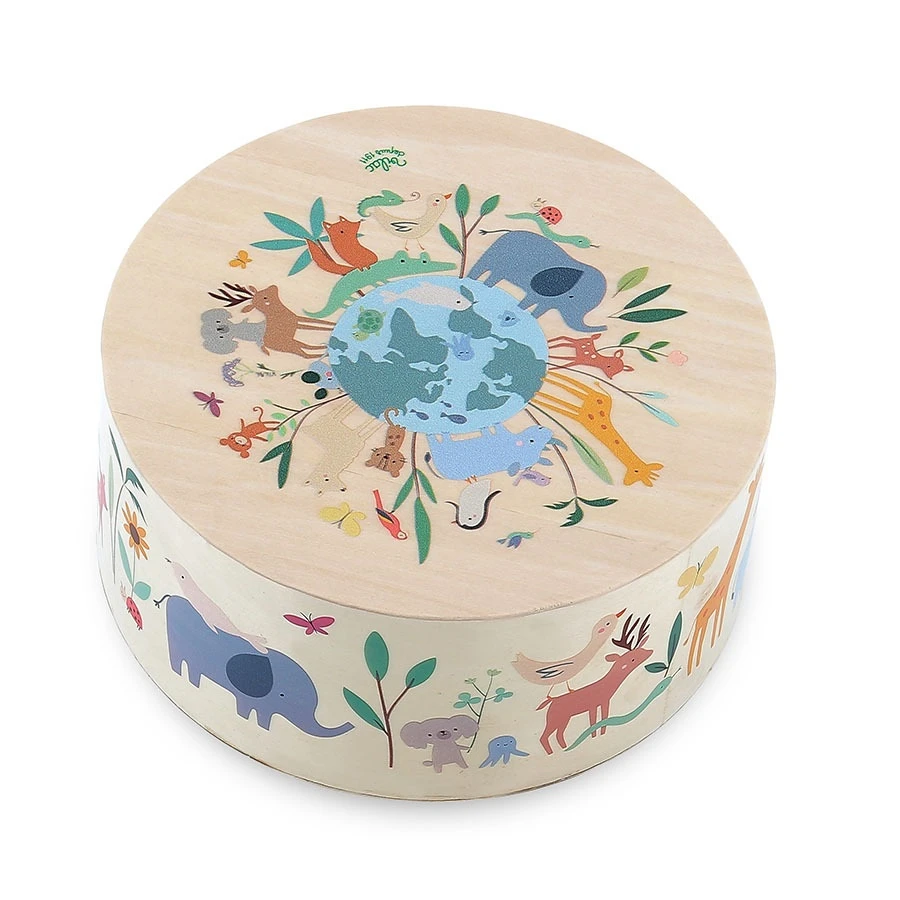 Dřevěný cajón bubínek Zvířata světa Sarah Betz Vilac