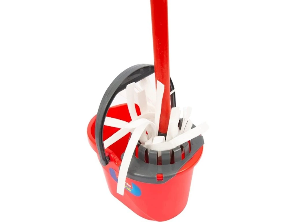 Úklidový vozík pro nejmenší, kteří chtějí pomáhat mamince a tatínkovi s domácími pracemi. Sada obsahuje kbelík se ždímačem, mop, smeták, lopatku a šlehací metlu. Kočárek se snadno skládá. Děti se budou moci zábavnou formou naučit domácí úkoly rodičů, procvičit motoriku a aktivovat fantazii. Celá sada měří cca. 50 cm.